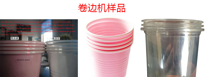 本機主要適用于聚氯乙烯PVC、聚苯乙烯PS、聚酯PET、改性聚丙烯PP、環(huán)保降解PP等塑料口杯卷邊。